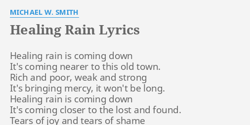 Healing rain michael w smith. Healing Rain Chords - Michael W. Healing rain is coming down Its coming closer to the lost and found. All lyrics listed in Full Lyrics are copyright and property of their owners.