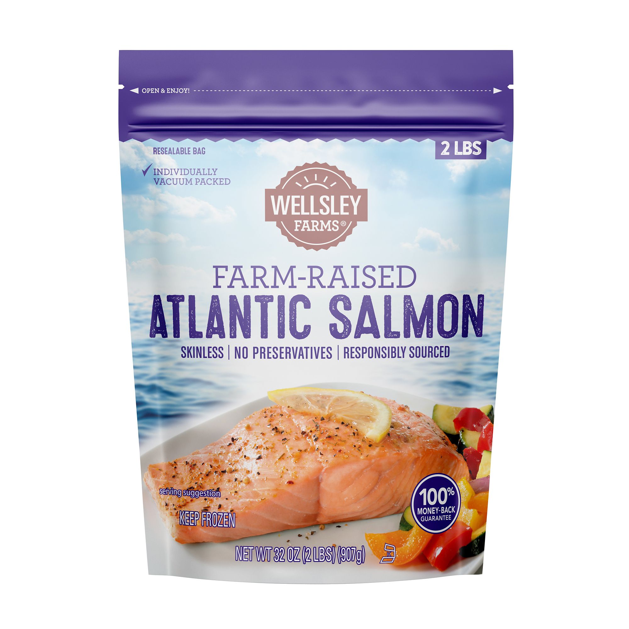 There are 360 calories in 1 fillet 170 g of Kroger Farm Raised Atlantic Salmon. Get full nutrition facts for other Wellsley Farms products and all. Farmed salmon also known as salmon aquaculture involves different species of salmonmost commonly the Atlantic Salmonbeing raised for food using intensive farming techniques. Amount of fat in Farm Raised Atlantic Salmon Steak. Amount of calories in Farm-Raised Atlantic Salmon Fillet. A 4-ounce fillet of cooked farmed Atlantic salmon has 755 milligrams of omega-6 fats. There are 320 calories in 5 12 oz 55 oz of Wellsley Farms Farm-Raised Atlantic Salmon.